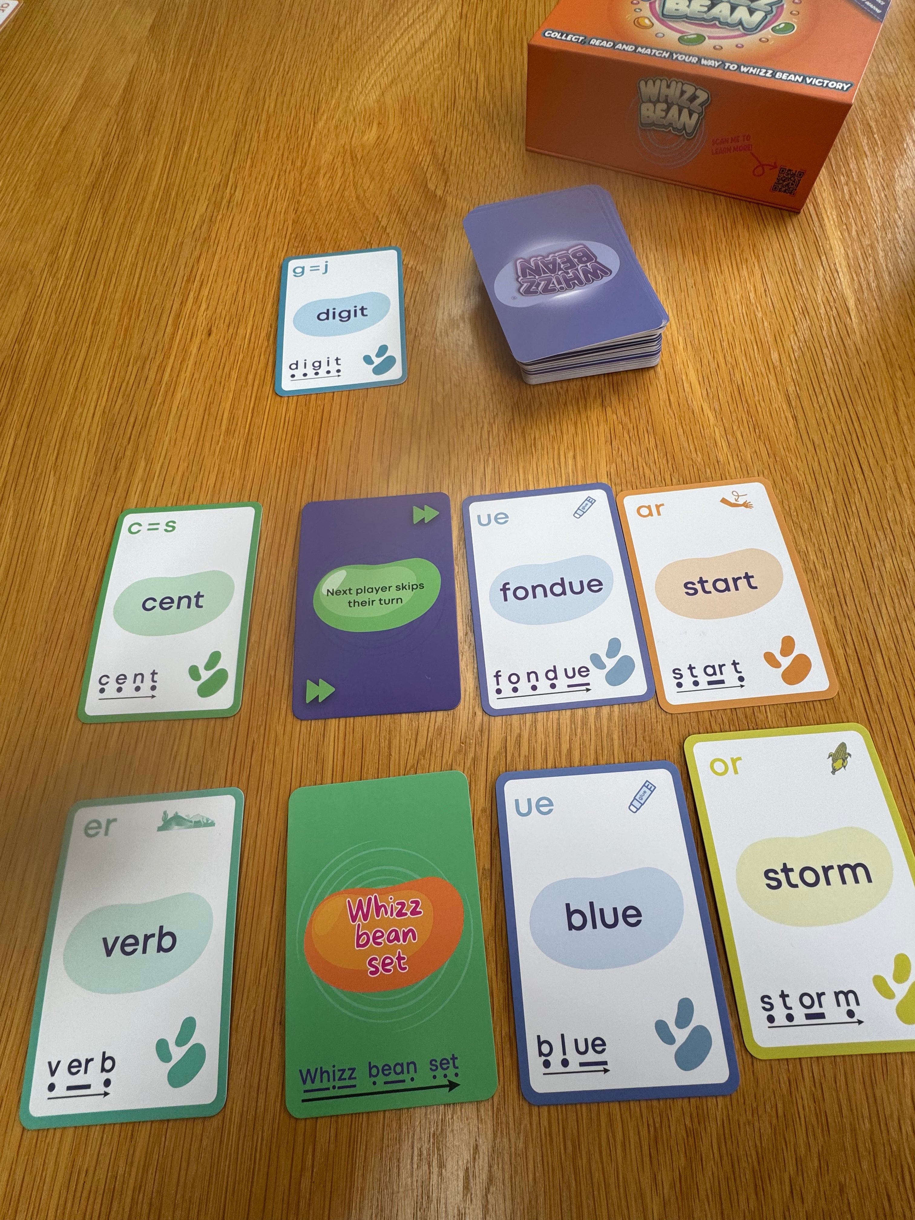 Whizz Bean is a hands-on, evidence-based phonics card game designed to help children become confident, fluent readers through fun and engaging play. It’s backed by the Science of Reading and created by a qualified Primary Teacher and Literacy and Dyslexia Specialist.